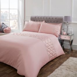 Sienna Satin Pintuck Diamante Band Duvet Cover Set Blush Pink